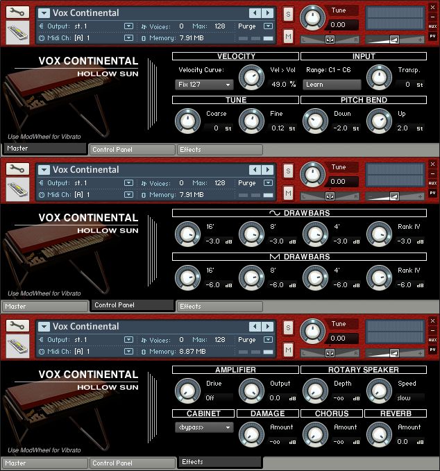 The Kontakt version has been carefully scripted to recreate the front panel of the original as closely as possible but with some obvious advantages too and comes with amp and cab simulation, rotary speakers as well as more modern effects such as chorus and reverb. There's even a 'Damage' control to make your 'Connie' sound more beaten up!!