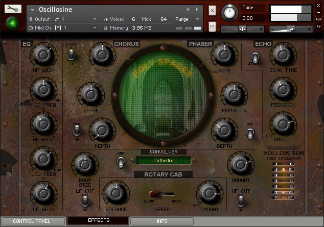 Almost as though it was found in the back of a damp garage after decades of neglect, Hollow Sun has created Oscillosine. Reminiscent of an oddball inventor's strange homebrew creation, Oscillosine is designed to conjour the sights, sounds and smells of a 1940s experimenter's laboratory... glowing valves, otherworldly audio and maybe a hint of pipe tobacco.