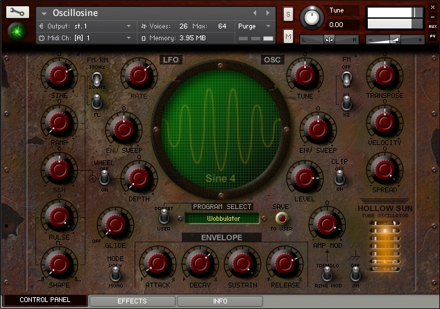 Oscillosine uses Kontakt's advanced modular synthesis facilities to